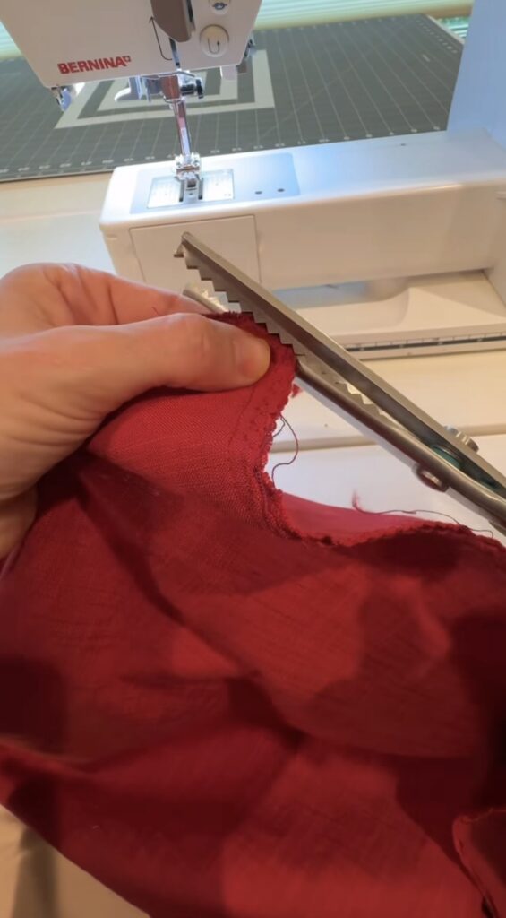 Since I’m skipping the serger for this project, I use a zigzag stitch around the raw edges to prevent fraying. If the edge puckers a little from the zigzag, no worries, just steam it flat with your iron so your corners stay crisp and clean.